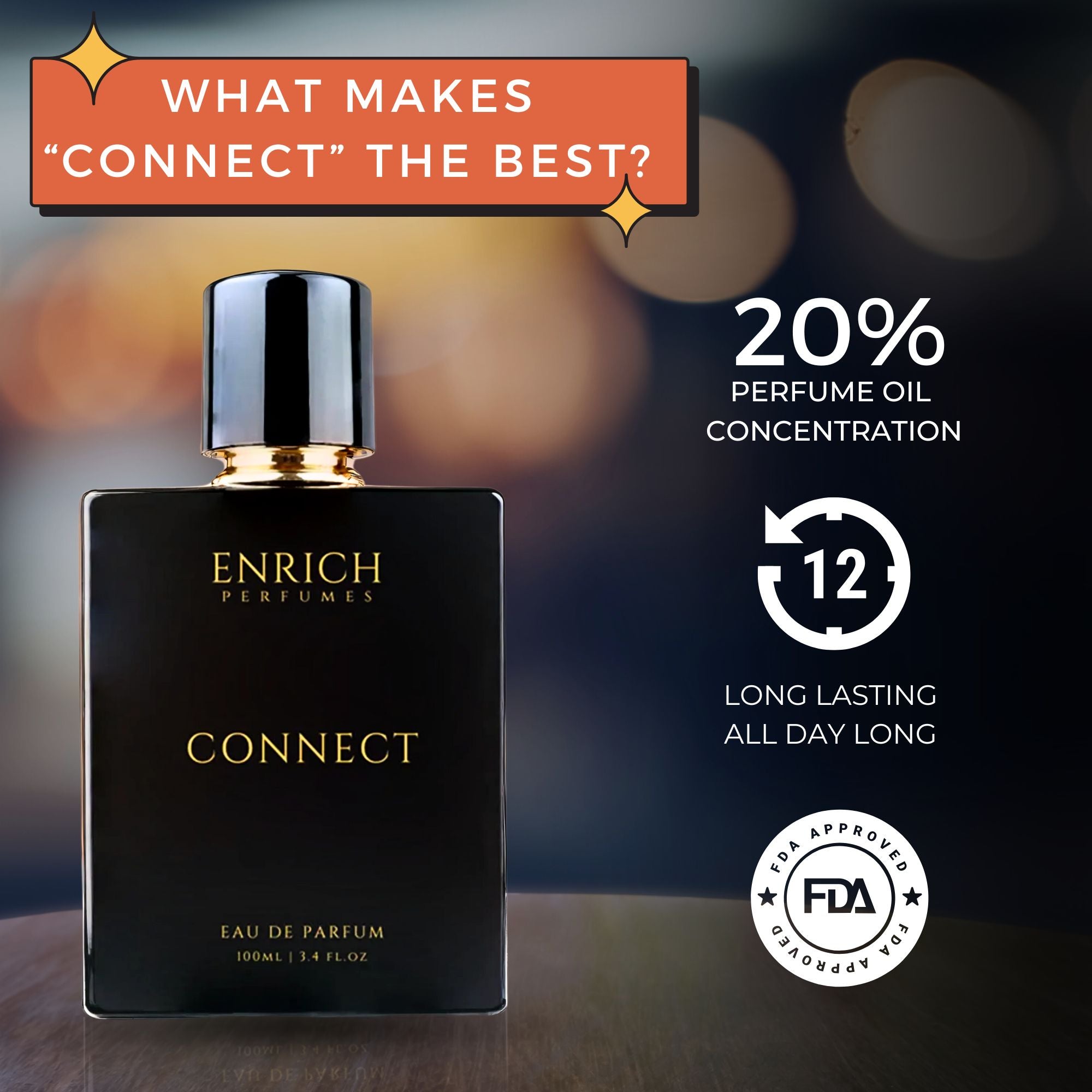 Connect by Enrich Perfumes is a sophisticated, long-lasting fragrance with heavy projection: